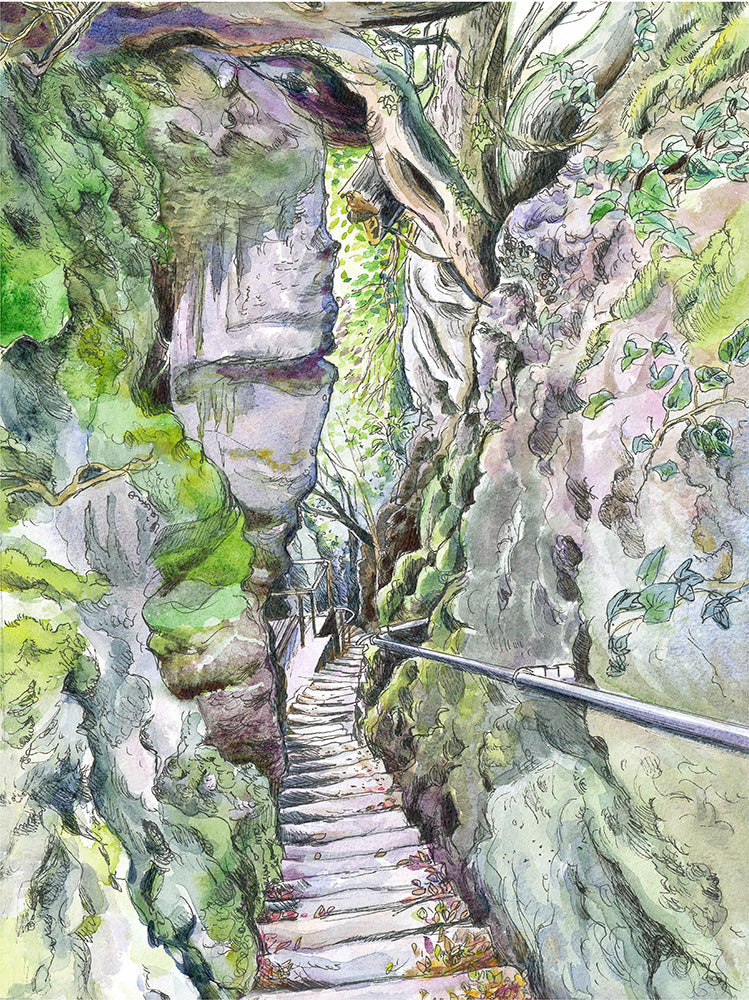 This is an unusual work for me but I was so inspired by the never-ending steps and dangling ivy I made an exception.