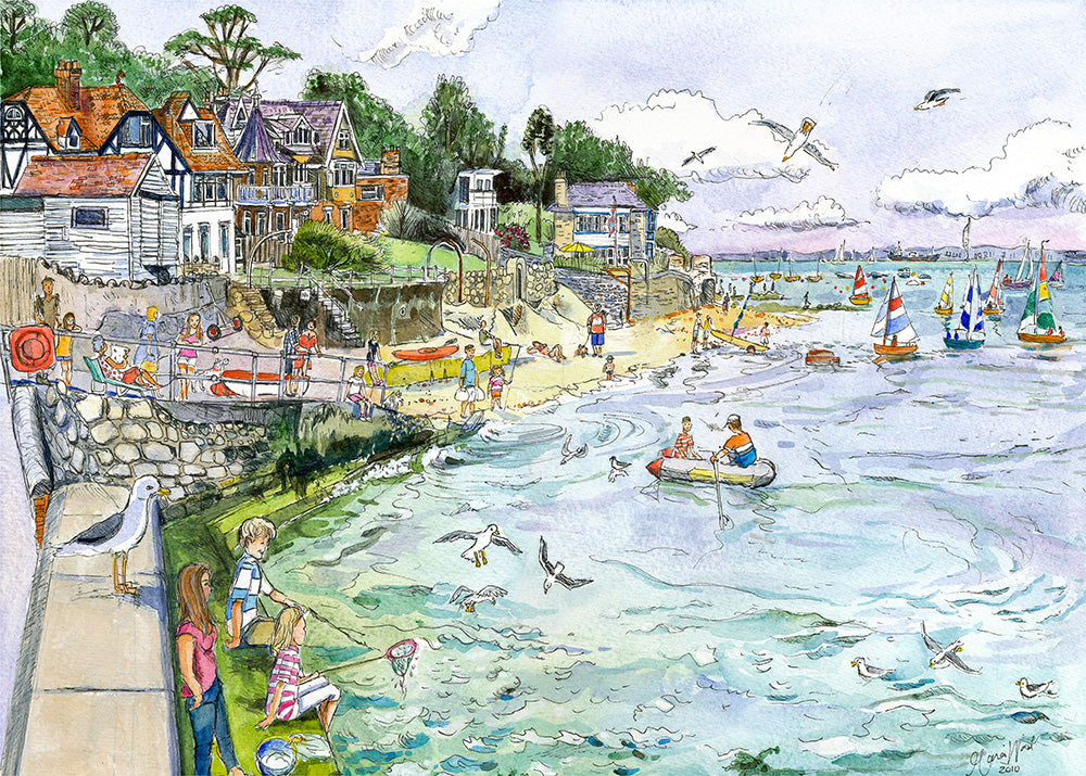 Lots of action and activities going on; my favourite sort of scene to draw and paint.