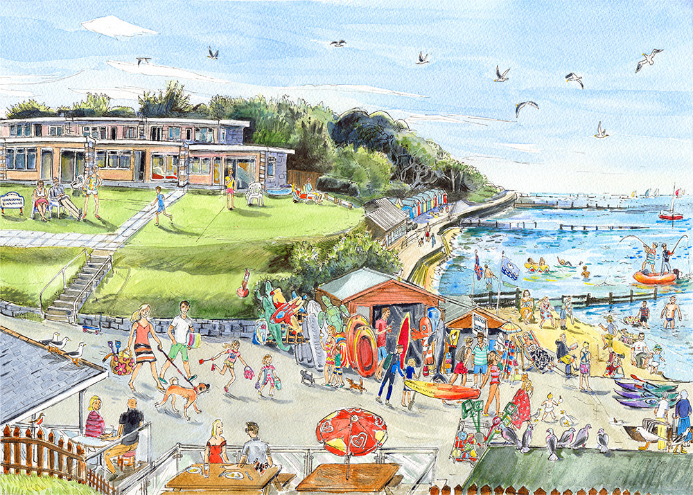 Colwell is a beautiful bay with easy parking and access, the shops sell a menagerie of inflatables and the smooth sand and turquoise water is a perfect place to test them out.