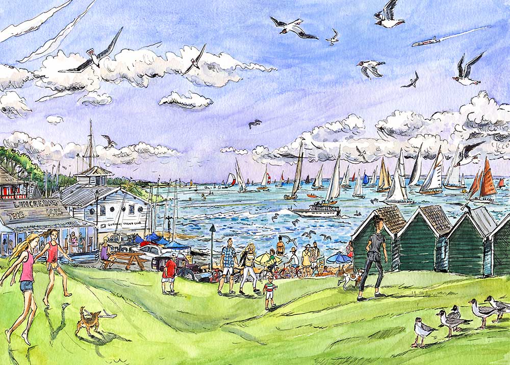 The green huts with children running across the green grass and sea beyond make an uplifting picture. When I first started painting an established local artist said he applauded my use of green in my paintings, he went on to say that most artists painted gold or blue instead of actual green. Enjoying colour and the impressionists ethos I aim to bring out the colours in everything I see. The idea of not using such a verdant colour around us in such abundance seems like madness to me.