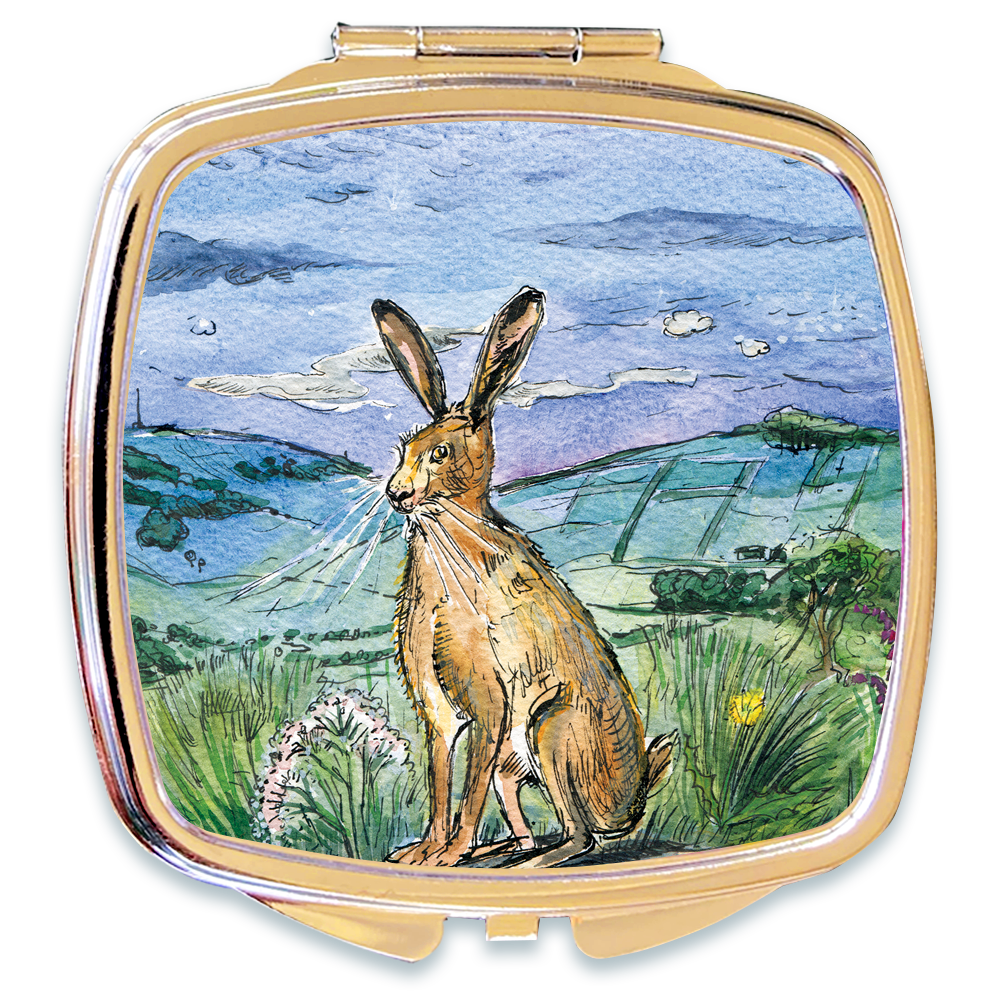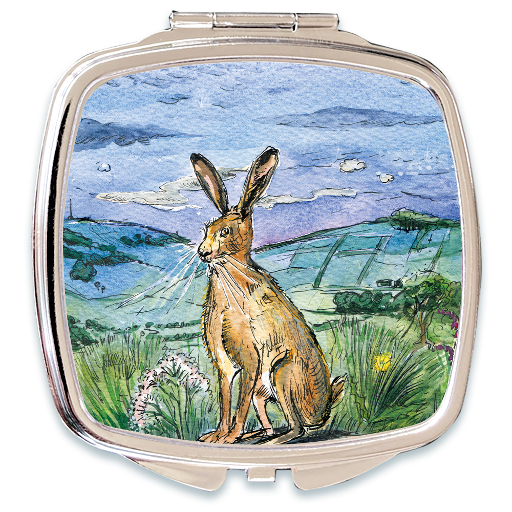 Beautifully printed solid square metal compact case with curved corners and dressing mirror inside measuring 75 x 65 x 8mm