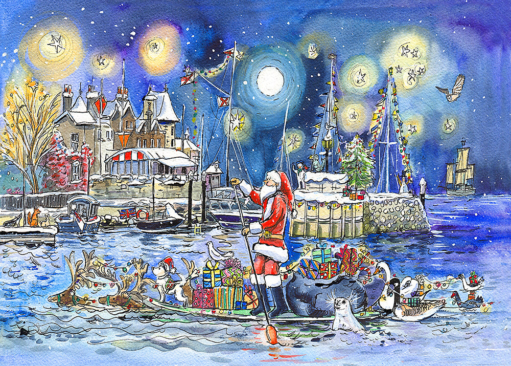 413 - Father Christmas at the Royal Yacht Squadron in Cowes - giclée Print