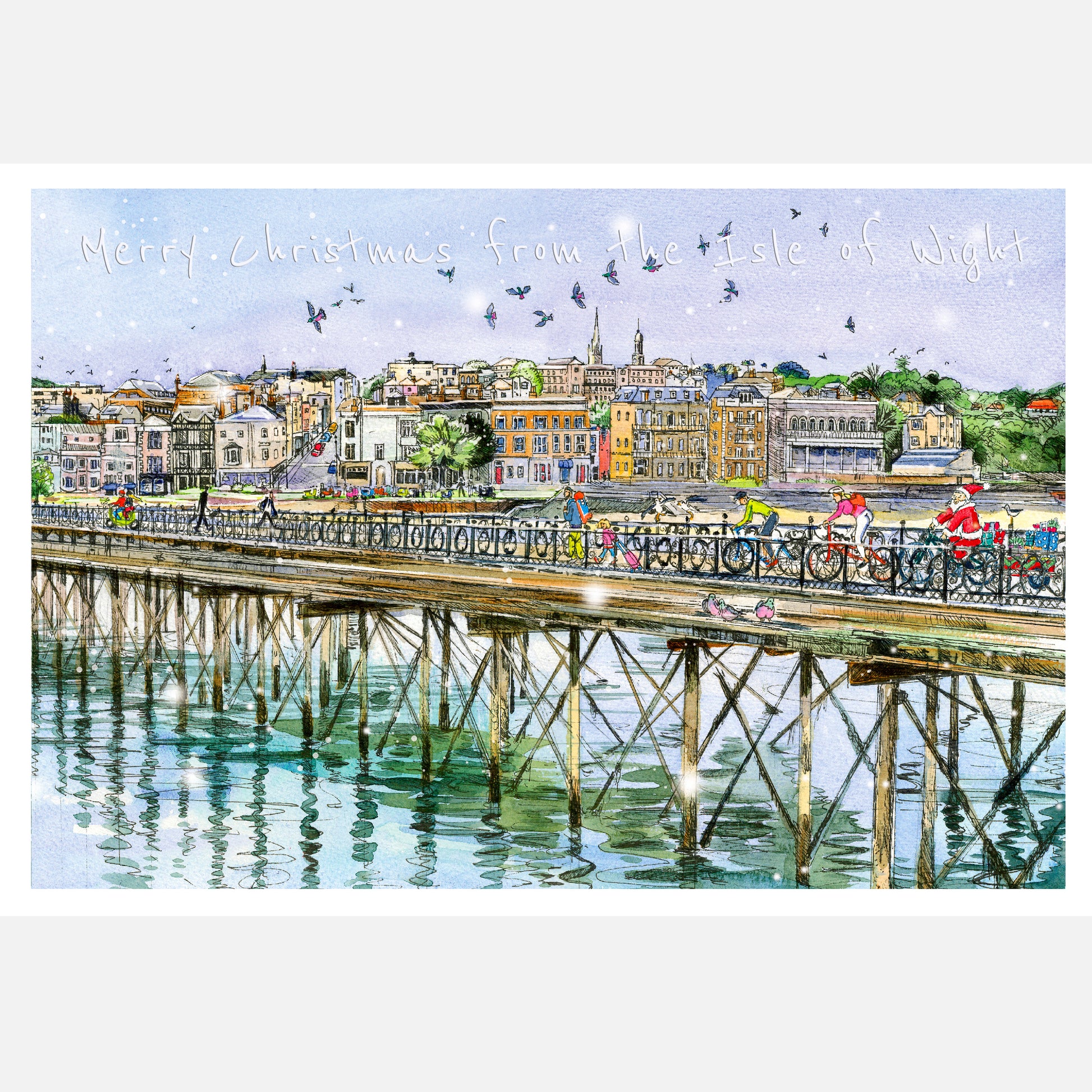 card - Santa cycling along Ryde Pier
