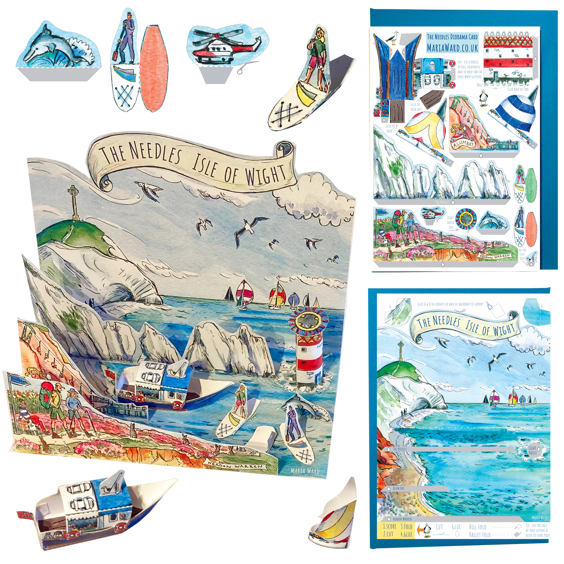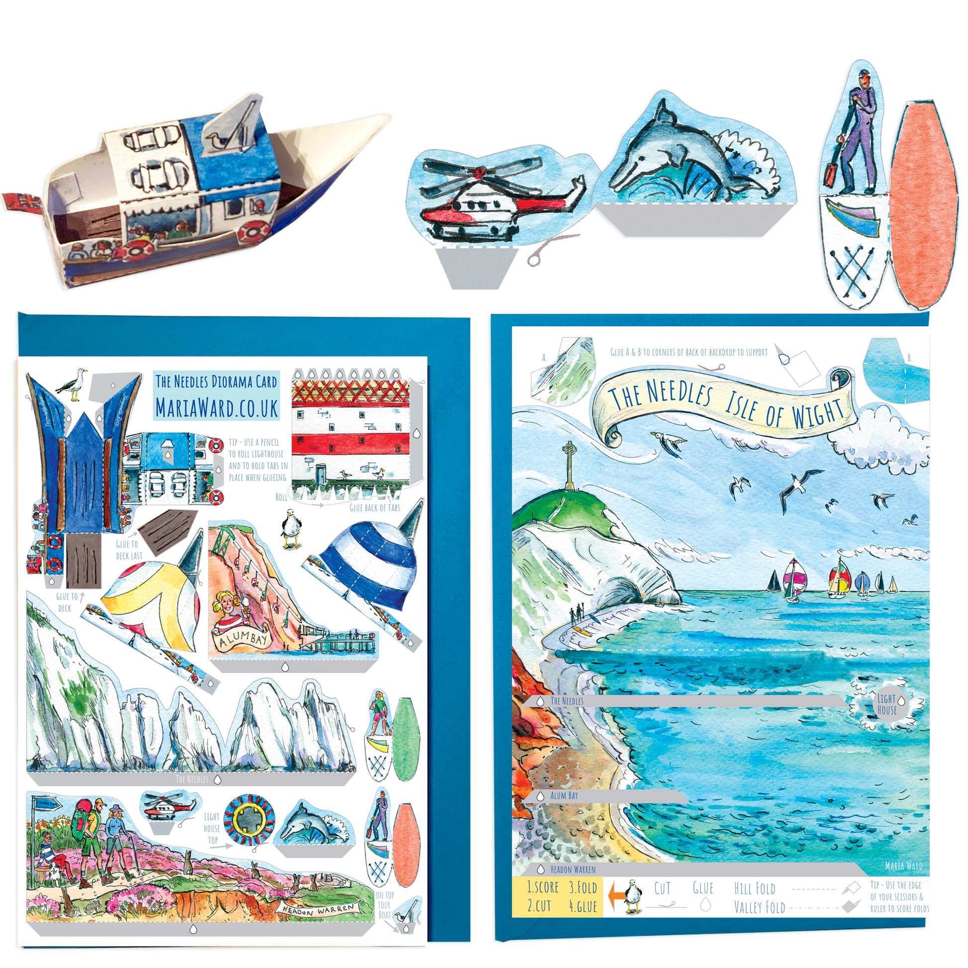 Cut and assemble to create your own diorama (a three-dimensional, miniature representation) of The Needles and it's lighthouse, Alum Bay, Headon Warren and Tennyson Down.